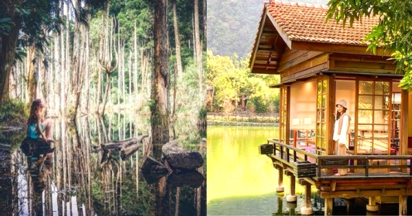 堪稱「台版九寨溝」的忘憂森林隱身於杉林溪附近的豬彎,因南投九二一大地震後,這邊積水變成一處沼澤濕地,讓一大片杉木泡在水裡而枯死,形成今日的人間仙境!