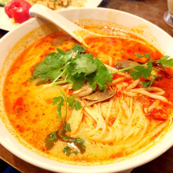 這道料理端上來想說死定了,紅通通的會不會辣死!裡面還加了河粉,超好吃!一點也不辣!整體因為加了香茅、香菜等香氣十足的葉子,超過癮。