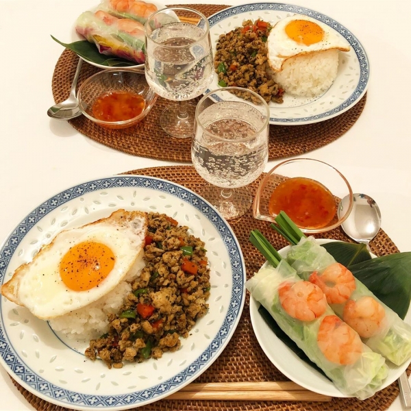泰國長米吃起來比較硬,配上道地的打拋豬,吃過才知道原來台灣的一點都不正統!