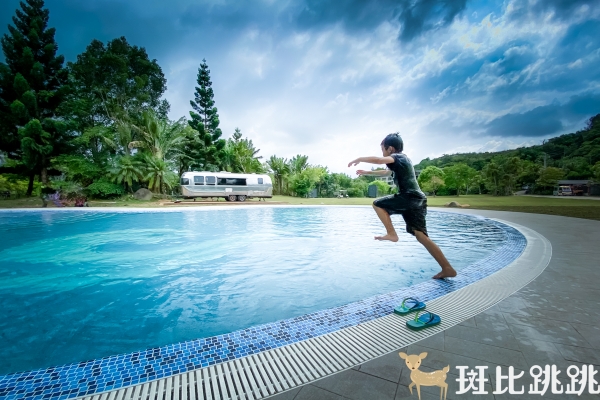 位於苗栗三灣棕櫚灣,傍著湖畔、群山環繞、景觀自然,離台北只有1小時車程。 只要人來,心在,自然沈浸在度假村與森林芬多精內。 聽著孩子們的嬉笑聲、品嚐精緻頂級料理、享受星空電影、加上夜晚的營火舒適氣氛。 斑比跳跳露營的主軸是度假好心情、輕鬆聽著音樂、吃著美食、泡在沁涼的池畔、享受歡樂、芬多精滿滿充實的野奢莊園體驗。