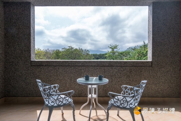 房間外還有個半露天陽台,放眼望去皆是藍天綠地,天氣好時可以坐在戶外休息,吹吹海風看看風景,多麼愜意~