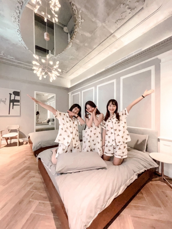 房間細節也超用心,灰色系床具搭配絕美燈飾,還有陽光透過窗戶灑進房內,整個好拍到不行!