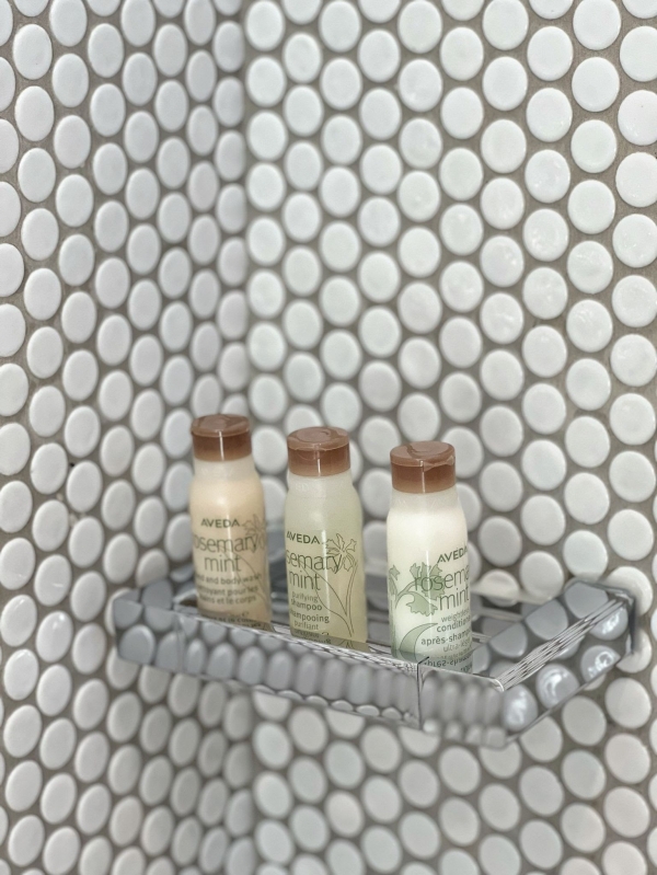 衛浴空間採乾溼分離設計,這裡花灑和蓮蓬頭水壓都很剛好,還有日本最喜歡的免治馬桶,沐浴用品更選用高級AVEDA品牌,好喜歡清爽的草本清香呀!