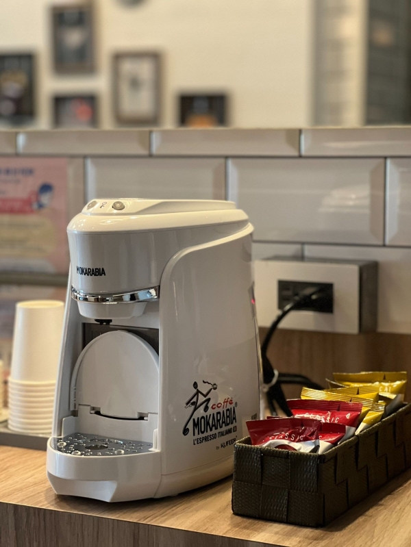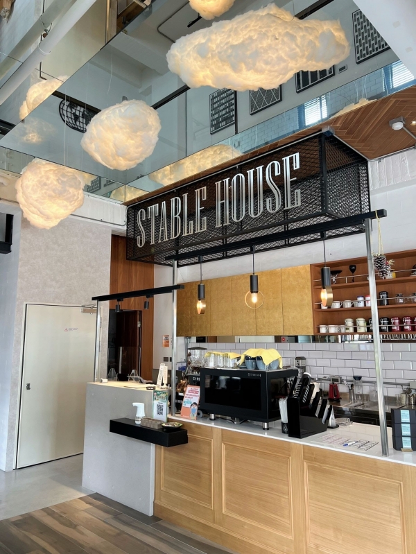 挑高的空間,寬敞明亮,上方還有超吸睛的雲朵棉花糖燈飾,一旁的公共區有公用電腦、咖啡機、免費點心及茶包等,可自行取用!