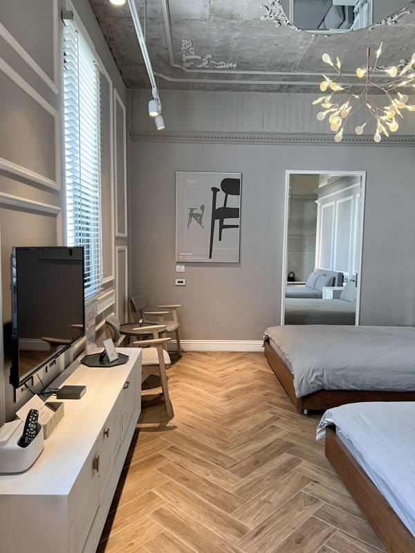 館內提供了各式質感客房,每間房設計主題都不同,這次要推薦你們的是超夯四人房「Ballerina 巴雷」,以現代與古典的工藝結合,重新演繹芭蕾舞者的優雅身形,無限的線條律動,延伸出黃金比例的美感想像。