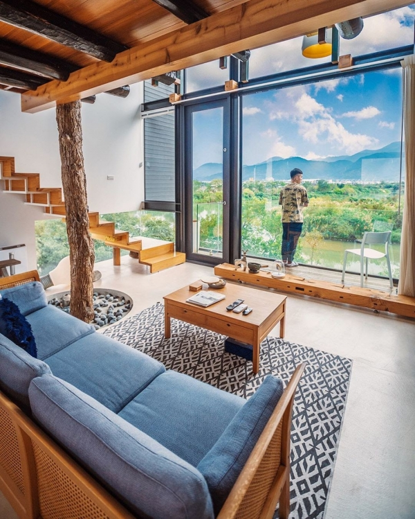 位於冬山河旁的獨棟玻璃屋,以清水模工法打造、與大自然共生設計,不僅每間房採光好且寬敞又舒適,夜晚還能抬頭看星星、遠眺河畔夜景超浪漫!