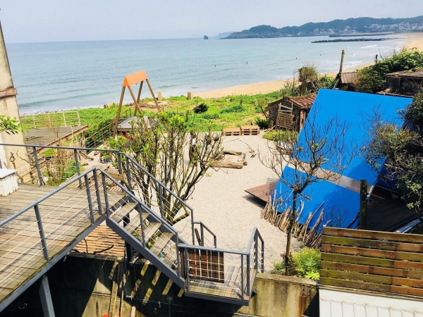 在金山中角沙珠灣旁,有一間相當顯眼的咖啡廳「Q.B.Days 靠北過日子」,寶藍色的外觀在大條道路上最為吸睛,店裡從後方出去直通海灘,看著大海喝完咖啡還可以去踏踏海浪,實在太幸福了!