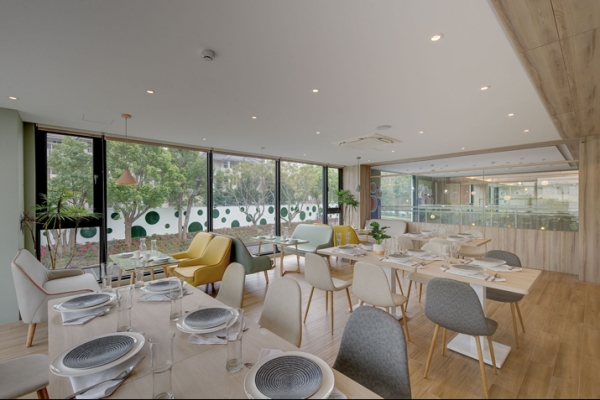 一樓餐館以溫馨的暖色調渲染了每個角落,寬敞舒適的用餐空間,設置了開放式及獨立式座位區,並提供多樣化料理,從中式、義式、美式甚至港式風味的佳餚任你挑選,美味又好吃!另外還貼心地準備了派對包廂,慶生、抓周、收涎等活動可預約使用。