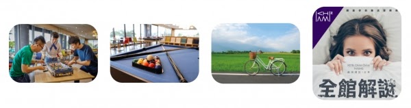雖然沒有健身房及游泳池,卻傳承了台北館及台南館內的「全館解謎」遊戲,就算只想待在飯店發懶也能動腦闖關!另外也有戶外探訪活動及多款桌遊等可以玩樂體驗,共享家人或三五好友歡樂時光!
