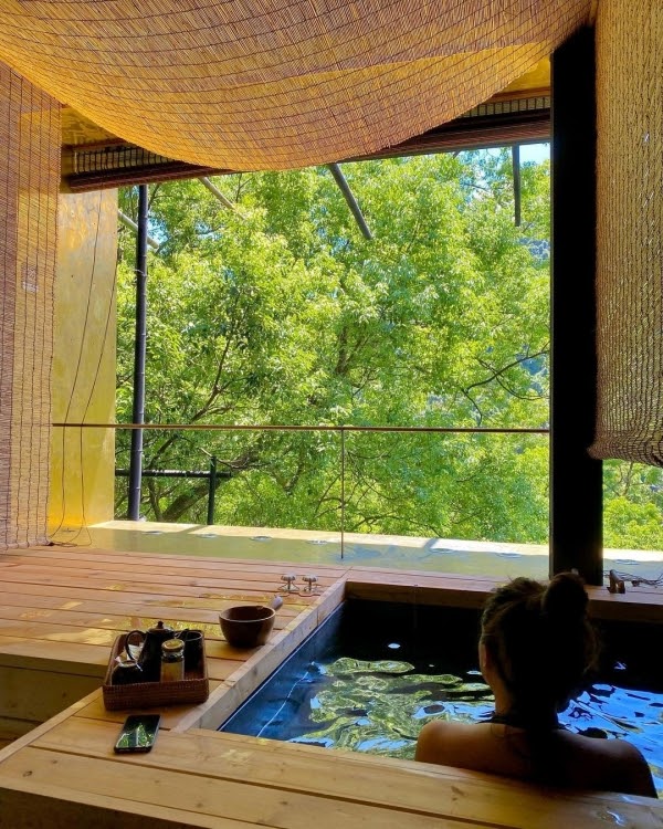 目前共規劃5種規格、16個泡湯空間,包含兩人世界的「原沐」、「森沐」,也有適合三人的「相浴」、「偶浴」及「聊浴」,最棒的是每間湯屋都能獨享靜謐空間,湯屋內沒有裝設窗戶,讓你邊泡湯邊欣賞充滿綠意的森林街景,靜靜感受沉靜與溫暖的美好!