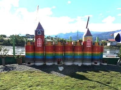 兔兔城堡主要是由一個個的油桶所製成,老闆使用廢棄油桶手工製作組合成一間大大的城堡,就是為了讓毛茸茸的兔兔在下雨天能避雨避風以外,如果太陽太大,可愛的兔兔還能躲在裡面,同時也是牠們休息玩樂安全的家。
