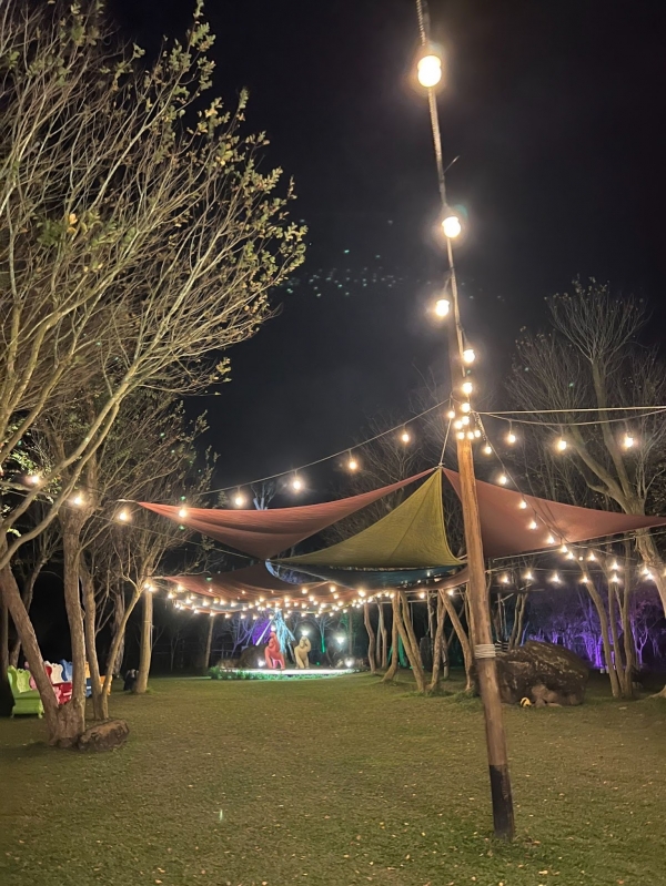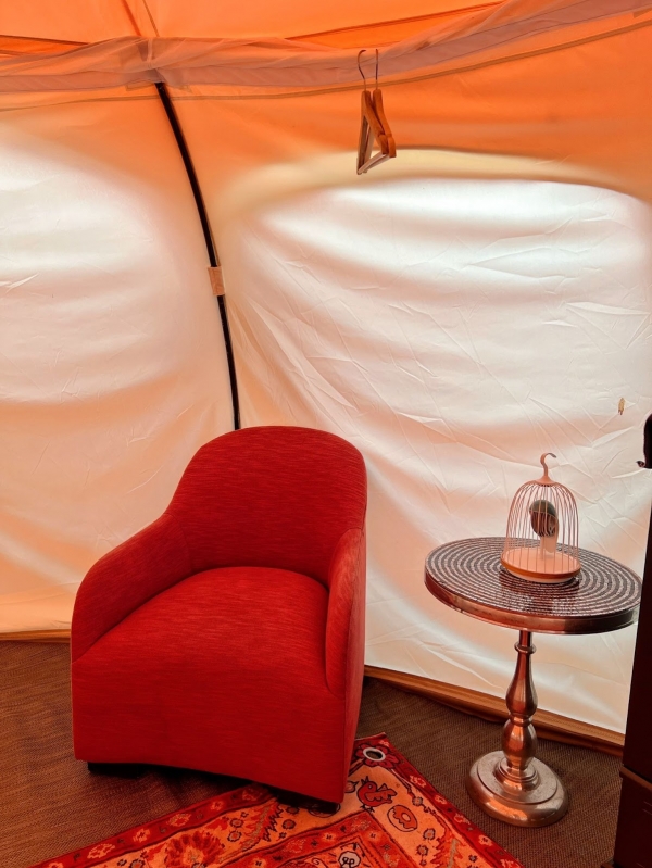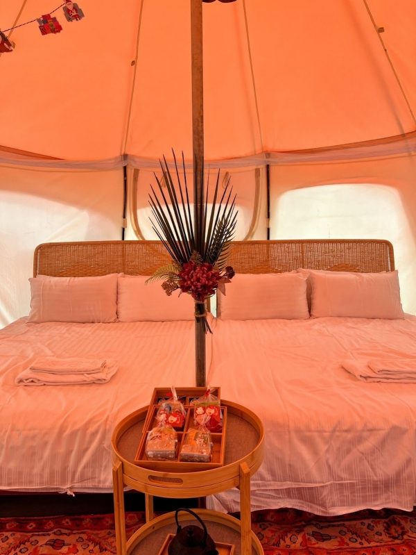 園區規劃三個住宿區域,分別為使用公共衛浴的野鴿區、野鴨區,以及擁有獨立衛浴的老鷹區。帳篷部分以圓形的蓮花帳為主體,寬闊的帳內空間,不僅提供床架床組,還有冰箱、藍芽喇叭、甚至冷暖氣空調等,設備應有盡有!