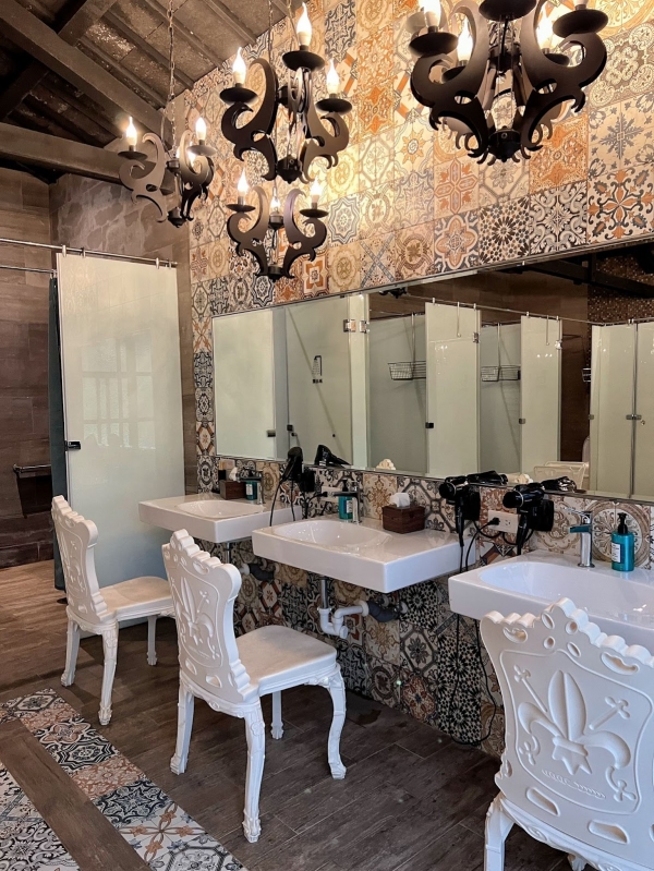 內裝德國進口高級衛浴設備,搭進口花磚形成獨特巴洛克風格,顛覆你對露營洗澡不便的印象!
