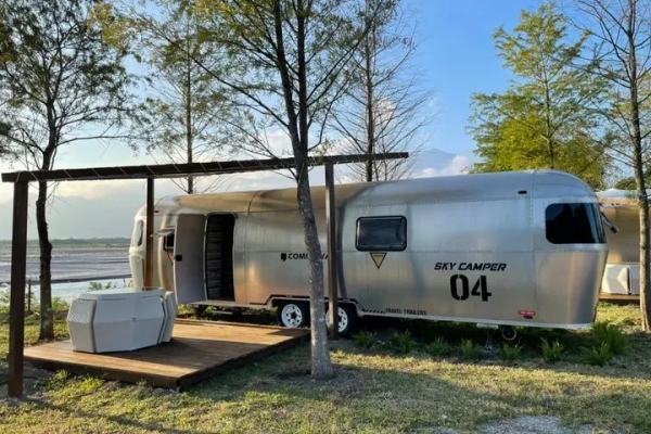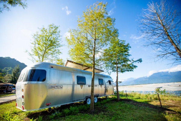 其中領航者露營車超吸睛,不僅位於花蓮溪畔第一排,全車更以高科技鋁合金蒙皮打造,車外設有沙發區、車內有乾濕分離浴室,設施應有盡有超享受!