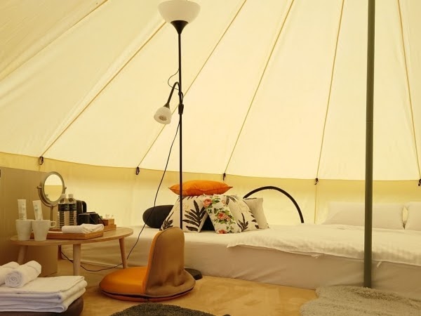 每帳32平方米2人,共有4帳。帳內附有冷熱泉池、獨立衛浴空間,體驗露營同時還能在帳內享受泡湯!