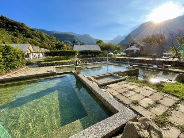 溫泉泉質為鹼性碳酸泉,無色無臭、水質乳白滑潤,山景溫泉為大眾湯池,座落於山林溪谷,共有四池不同水溫,享受水療舒壓及盡賞美景!