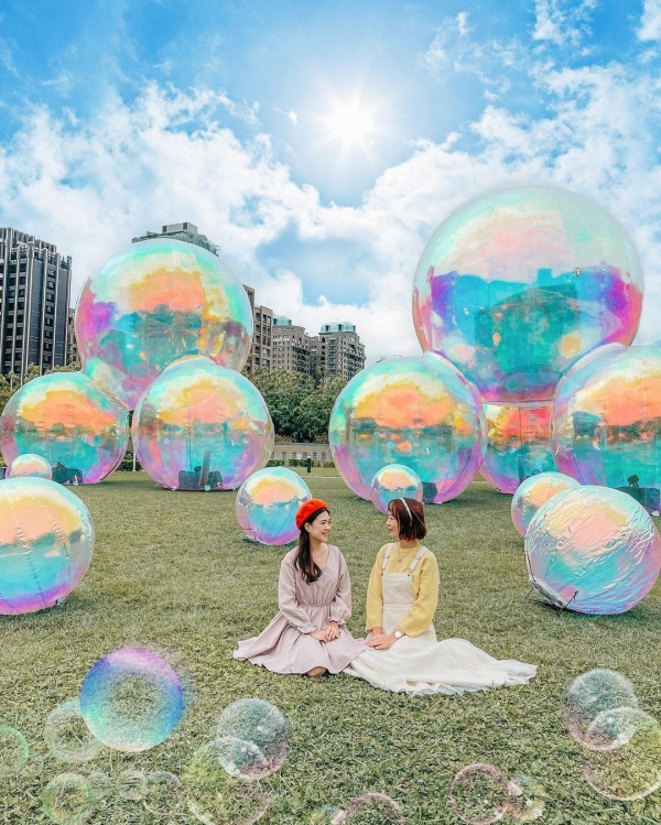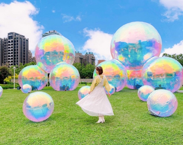 網美必拍!台中「2022臺灣國際光影藝術節」位於國立台灣美術館,這回以光・舞弄・影為主題設計,打造具表演性裝置特質的光之劇場,其中IG超夯打卡「巨大夢幻泡泡」超吸睛,無論是白天或夜晚都好好拍呀!