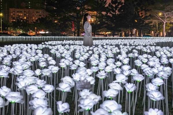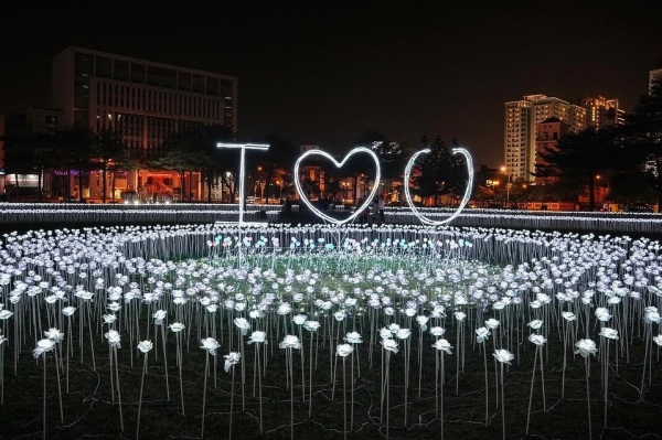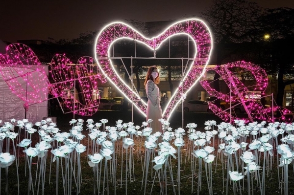 位於西拉雅廣場上,規劃了「愛在臺南 浪漫燈海」期間限定活動,逾3萬朵白色玫瑰花燈,還有象徵I Love You的「IOU」主燈,超多浪漫打卡裝置搭配夜晚點燈後,簡直太夢幻啦!