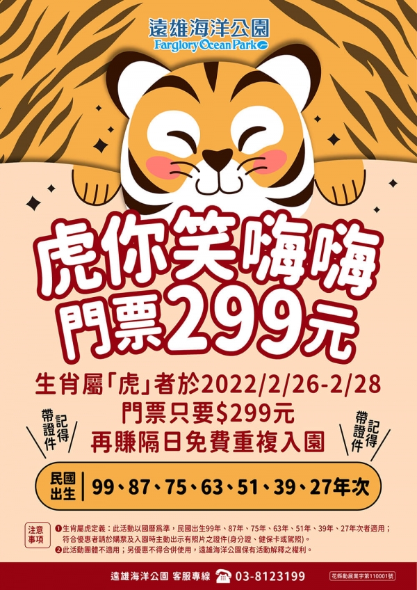 使用本優惠第二人入園1元,須搭配第一人購買599元門票。