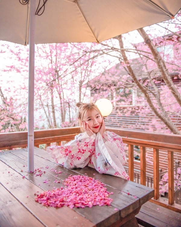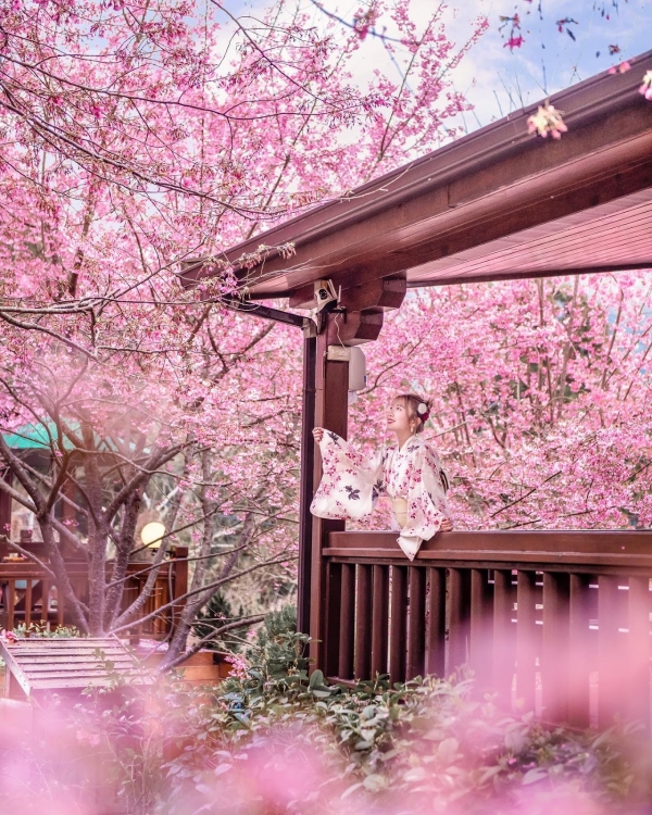 不出國也像在日本賞櫻!位於台中新社的櫻花鳥森林,不僅可以體驗穿和服漫步在櫻花步道上,還能搭乘森林小火車遊園,另外也有提供露營區,讓你在櫻花樹下浪漫露營!