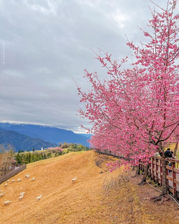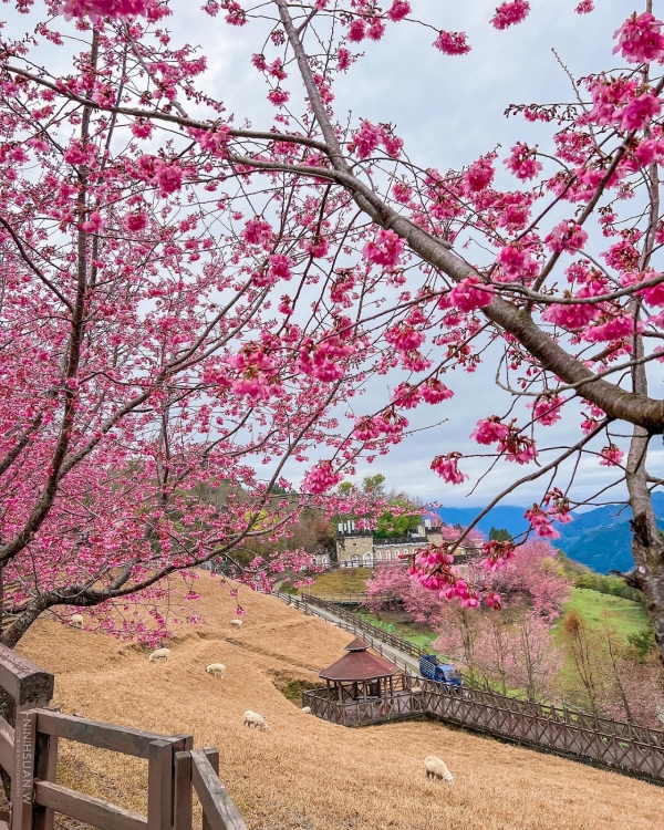 有霧上桃園的美名之稱,每逢二月櫻花綻放時便會形成一條櫻花步道,園區內不僅可以在天空步道上欣賞廣大美景,還可以在青青草原上觀賞綿羊秀,跟綿羊做可愛互動,還有觀賞表演。