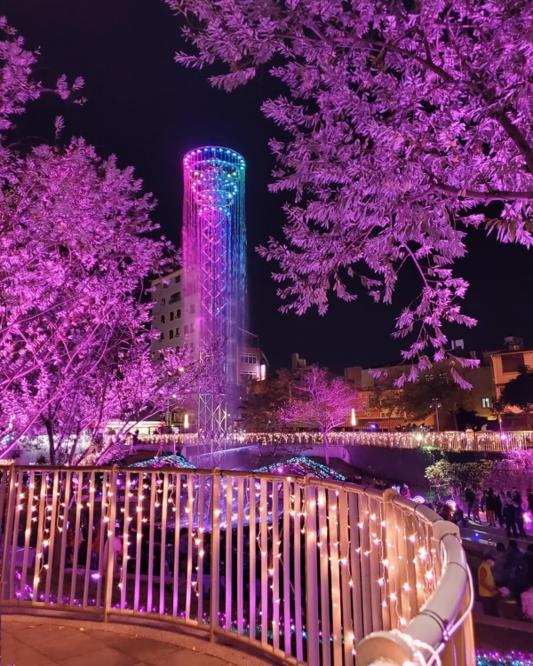 台中市區最夯的夜晚打卡景點!河岸步道因為LED燈光和裝置藝術的襯托,讓整條步道都很適合拍照~即便在白天也很漂亮,重點是裝置藝術會隨著節日而有所不同!