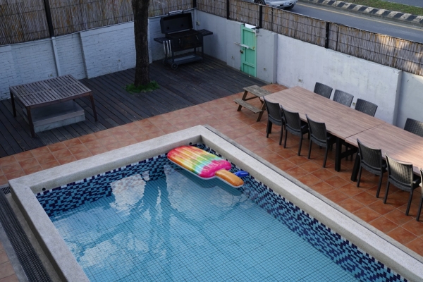 民宿有著大庭園、戲水池、美式烤肉車及麻將桌等,還有提供七台Gogoro免費讓住客騎乘,超適合10人以上包棟度假,午後在戶外玩水烤肉超Chill!