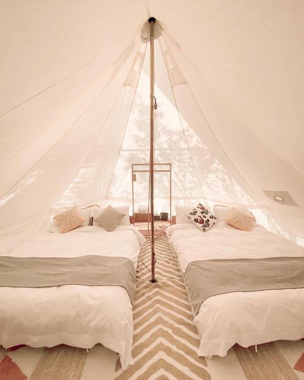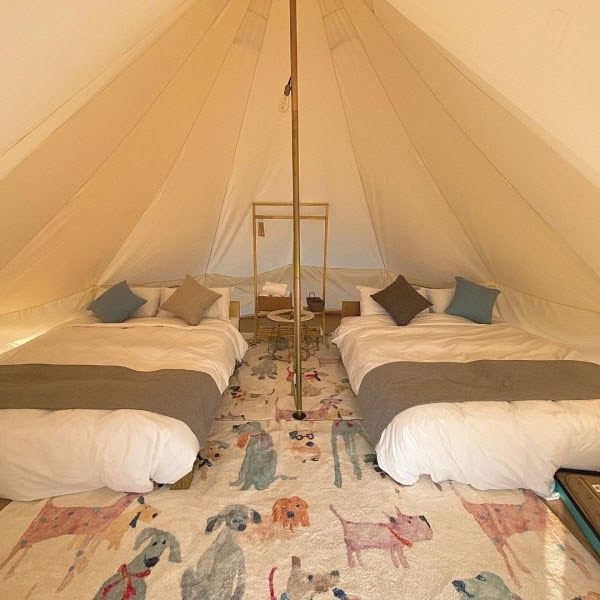 帳篷分成金雨樹(五米帳篷)、樂讀山(四米帳篷),空間寬敞舒適,就連備品也相當齊全,提供2張雙人床、暖爐、衣架、浴巾牙刷、洗髮乳、沐浴乳及吹風機等等,不用擔心什麼東西沒帶到!