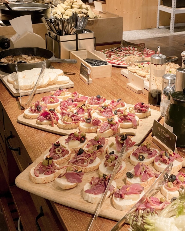 餐廳分為室內及戶外區,戶外區可以遠眺壯麗山景,早餐晚餐皆採Buffet形式,早餐甚至還能還能自己DIY飯糰,想吃什麼料自己來!