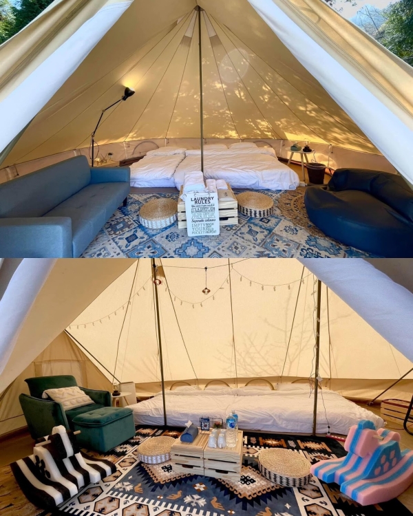 園區主打免裝備露營,省去搭帳篷的不便,備品一應俱全,提供浴巾牙刷、洗髮乳、沐浴乳及吹風機等等,不用擔心什麼東西沒帶到!