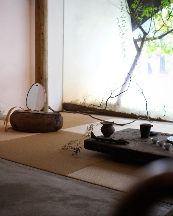 店內整體空間採用中西合併的簡約設計,茶室在三徑就荒如舞台展演的一隅。