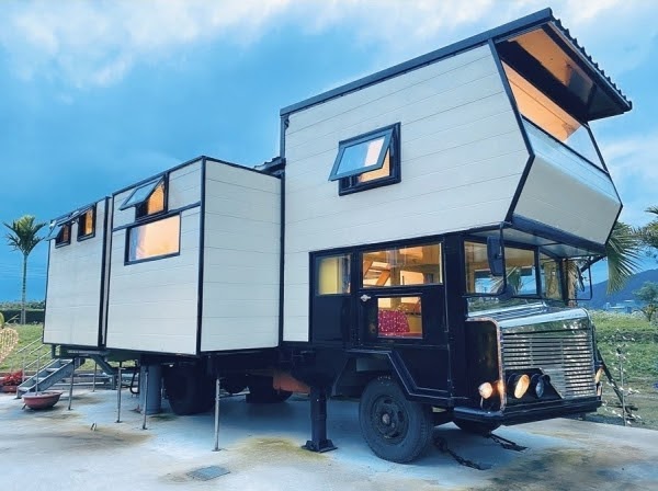 宛如闖進宮崎駿筆下中的霍爾移動城堡,如果住膩了一般民宿或飯店,不妨來體驗一下露營車吧!車體外觀看起來雖小,但其實內部五臟俱全,讓你在外就像在家一樣舒適~