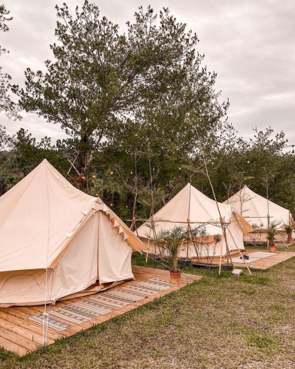 整個露營區一共有10帳,雙人帳6頂、四人帳4頂,每頂帳篷典雅又精緻,還都有裝冷氣,讓你不再為炎夏苦惱~