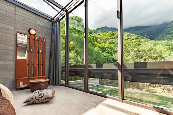 民宿整體都用大片透明落地窗包圍,那隱蔽的透視感,也不用去跟別人搶著享受自然美景。
