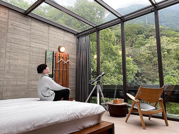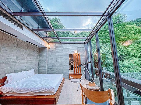 包含網美最愛的透明玻璃屋、零死角的窗景浴缸,夜晚抬頭還能仰望整個星空;