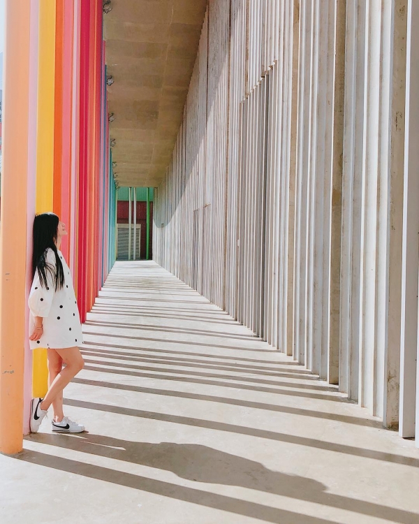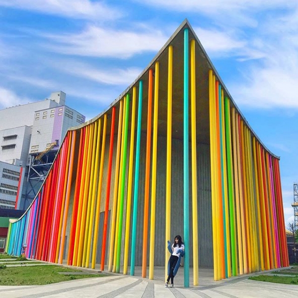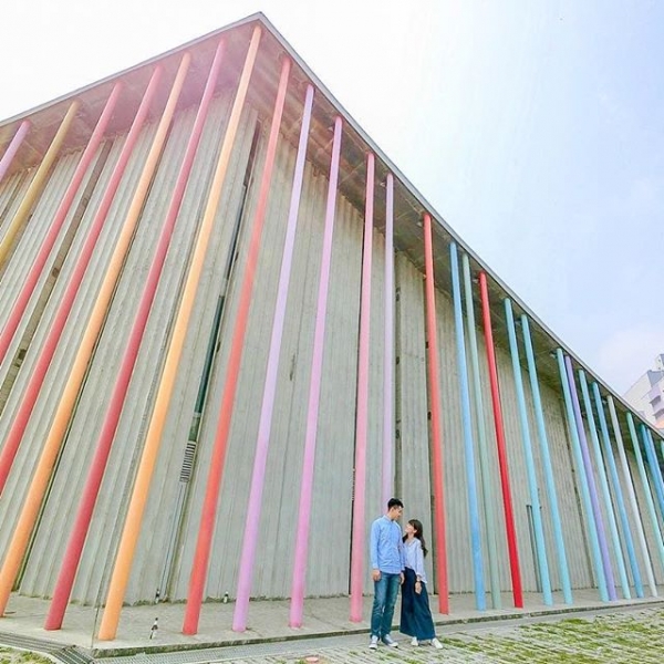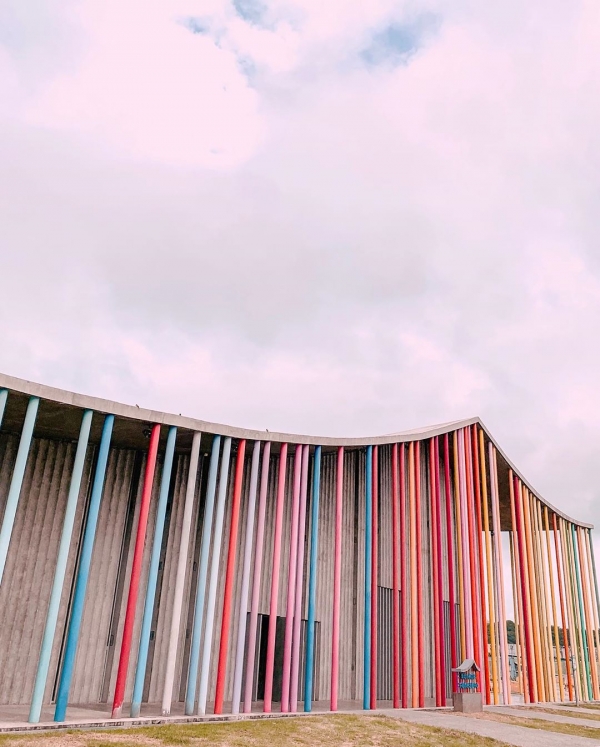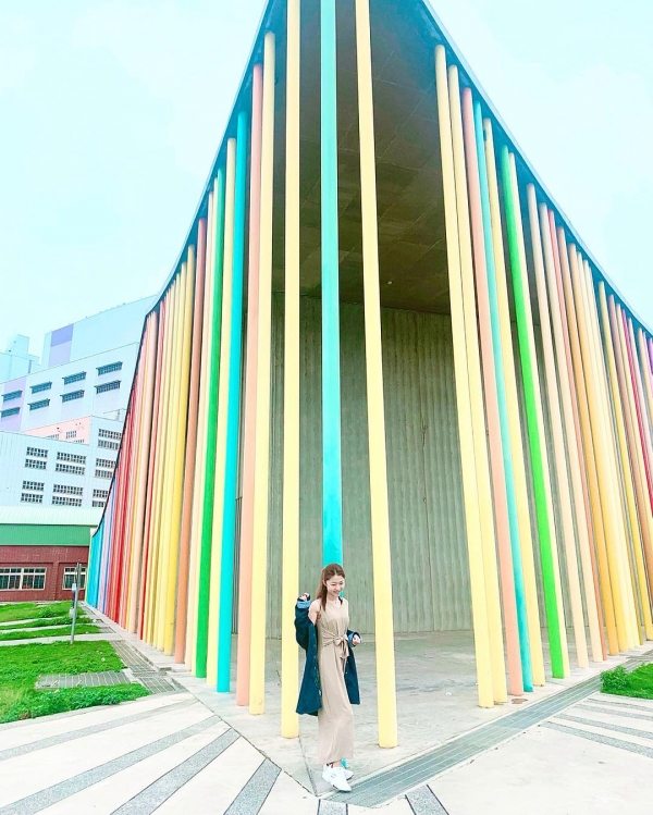 在林口的下福里,有一個超級繽紛的打卡熱點-全台最美的活動中心~由西班牙建築師設計,運用162枝、52種顏色的巨型柱子打造而成的景觀建築,拍起來直接繽紛度衝破天際啦!