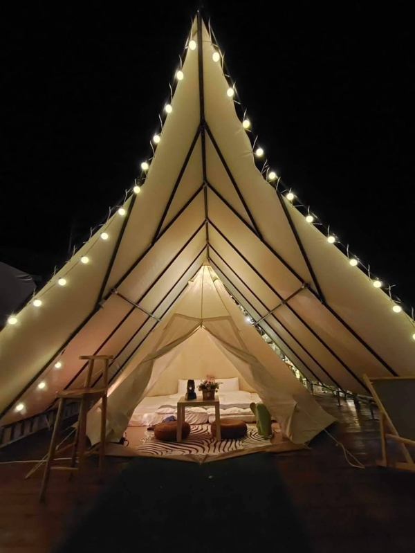 園區充滿著異國風情,每個營位以階梯式的排列方式面向山景,讓你零死角遠眺壯觀美景!帳內備品齊全,更提供獨家六星級衛浴,完全能夠感受到老闆對園區的精心設計!