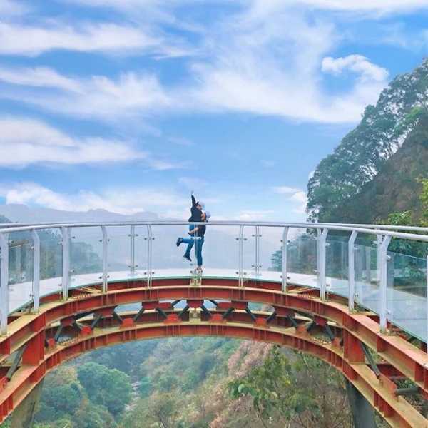 要去南投看龍鳳瀑布,一定可以看到一個相當特別的U型空中步道,這是南投縣府比照美國大峽谷天空步道的模式復刻建造而成,透明、無懸吊系統,拍照完全無累贅,而且視野超好、超級美!