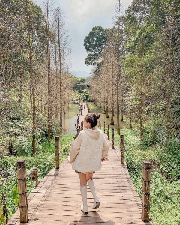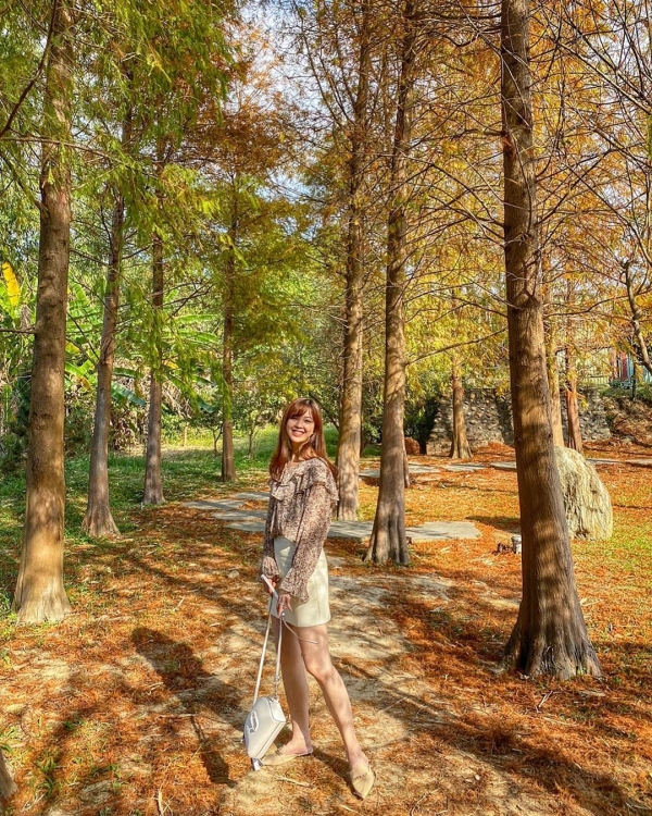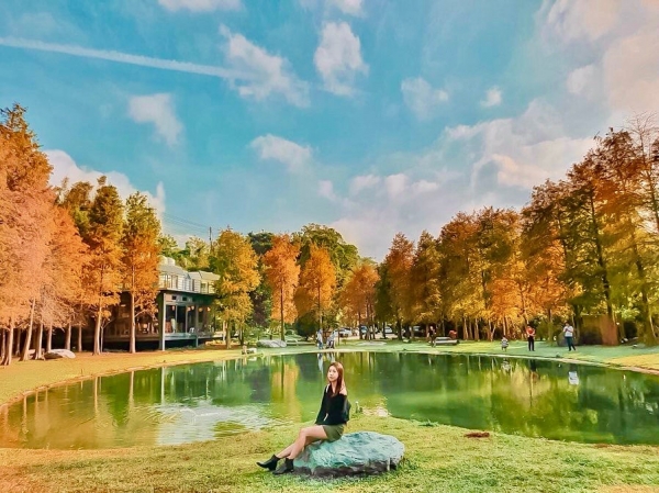 「大樂之野景觀餐廳」成片的落羽松就環繞著愛心形狀的池塘,簡直浪漫無限~這裡可是超級熱門的落羽松秘境,想來用餐一定要記得預約喔!