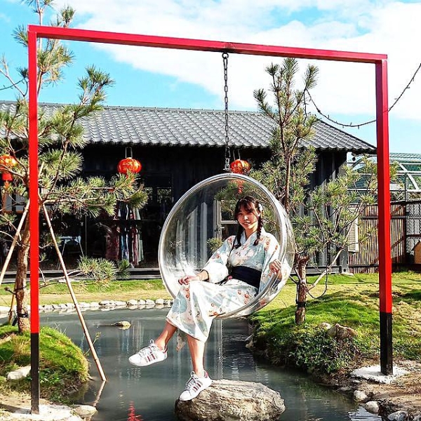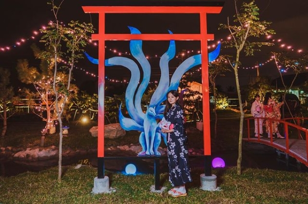 園區內的造景包含日本拱橋、九尾狐鳥居、拉車等各種超級日式風的拍照最佳背景!真的彷彿就走在日本街頭上。
