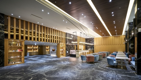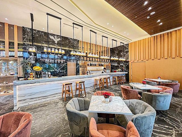 空間寬敞的咖啡廳,柔和燈光照耀,配上輕音樂,營造出舒適愜意的環境。飯店將此區打造一個,網美不可錯過、非拍不可的打卡景點。