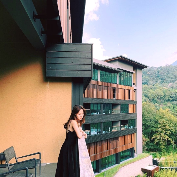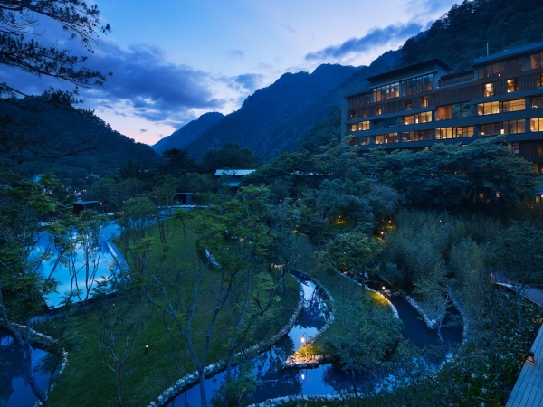 虹夕諾雅谷關以「溫泉溪谷的樓閣」為概念,融合谷關溫泉區的當地美景及人文風情,打造出一座與大自然相互共鳴的建築及景觀設計