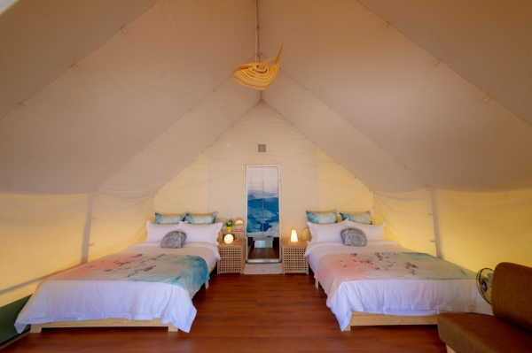 帳內有獨立衛浴/冷氣,一泊三食全包式露營,是全台唯一靠海的豪華露營區,提供兩種帳篷選擇,有豪華露營帳以及納海木屋帳,還有火烤兩吃自助吃到飽!