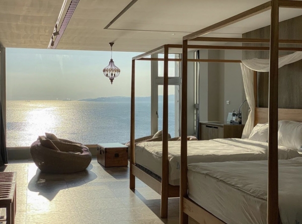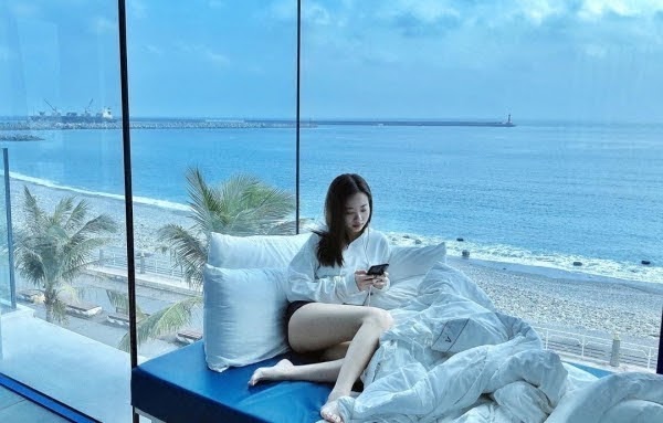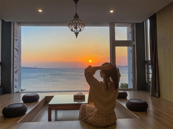 房間為全景落地窗設計,讓你待在房間就能享受零死角海景視野~