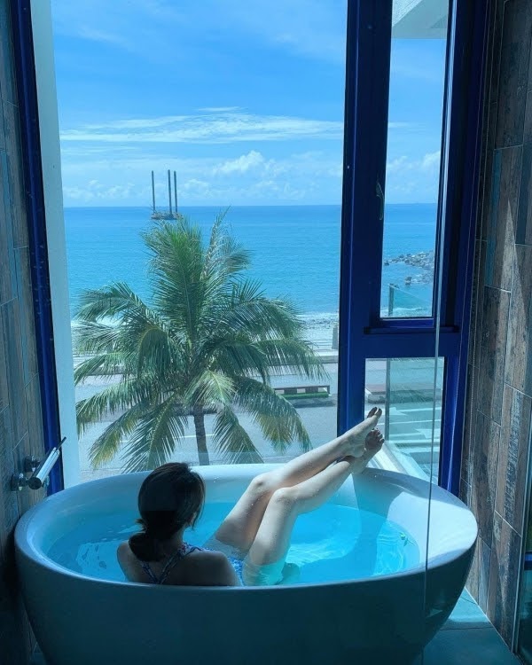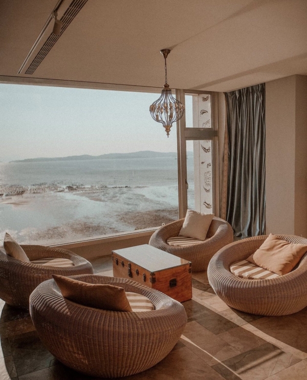 裡面每間房都面朝大海,並且擁有超大面落地窗,在陽台就能欣賞美景,大自然的陽光能直接透進房內!慵懶的躺在吊椅上就可以欣賞海景~