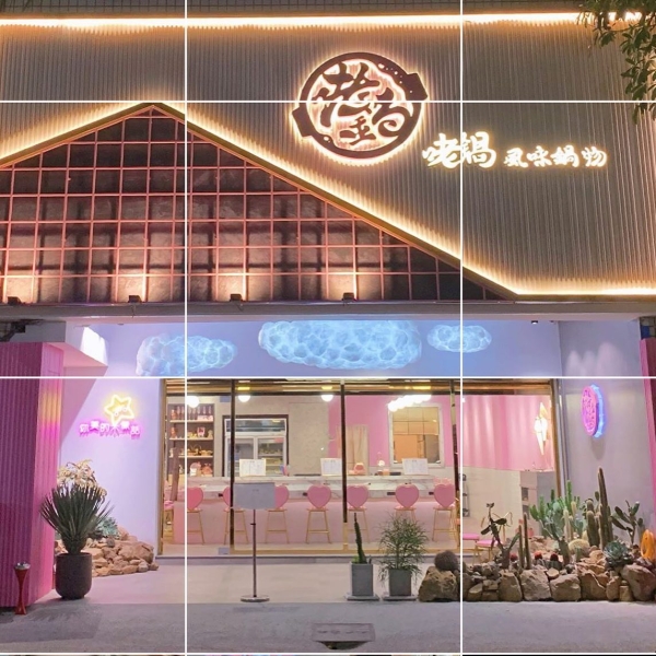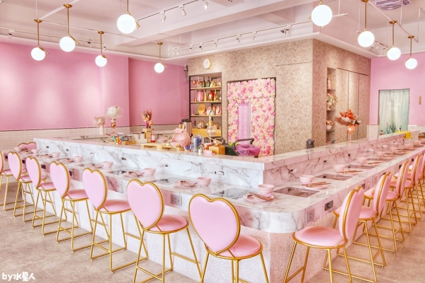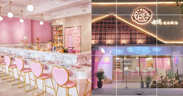 咾鍋擁有極具少女心的夢幻粉紅色外觀!內部裝潢也是以粉色為基調,設計多個網美打卡牆,非常好拍~
