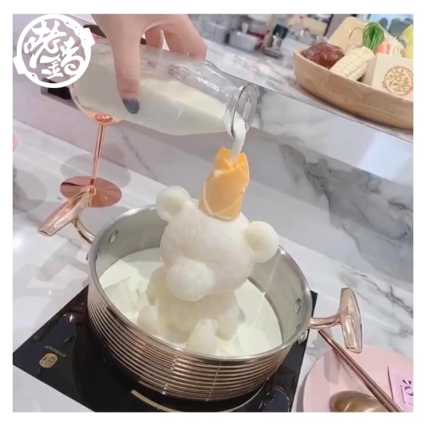 咾鍋還有可愛的牛奶冰磚鍋,但數量有限,需要先預訂!一天大概只有10個左右,而且冰磚會有很多不同造型,看上去真的非常可愛!