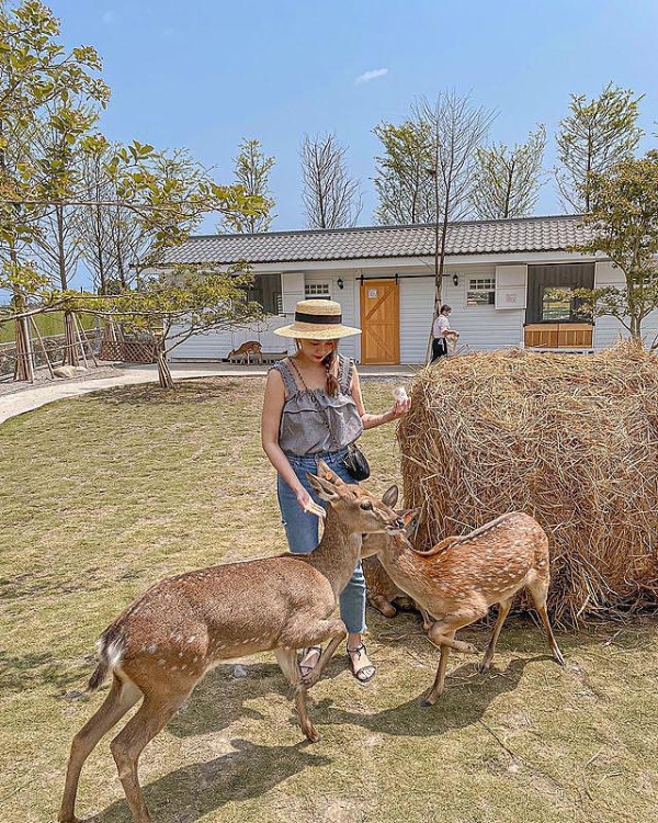 園區採純白色調,種植超夯的「落羽松」、「四月雪-流蘇樹」,還有在園區內自在穿梭的梅花鹿和迷你驢,讓遊客都能隨手拍出最好看的美照。