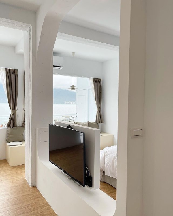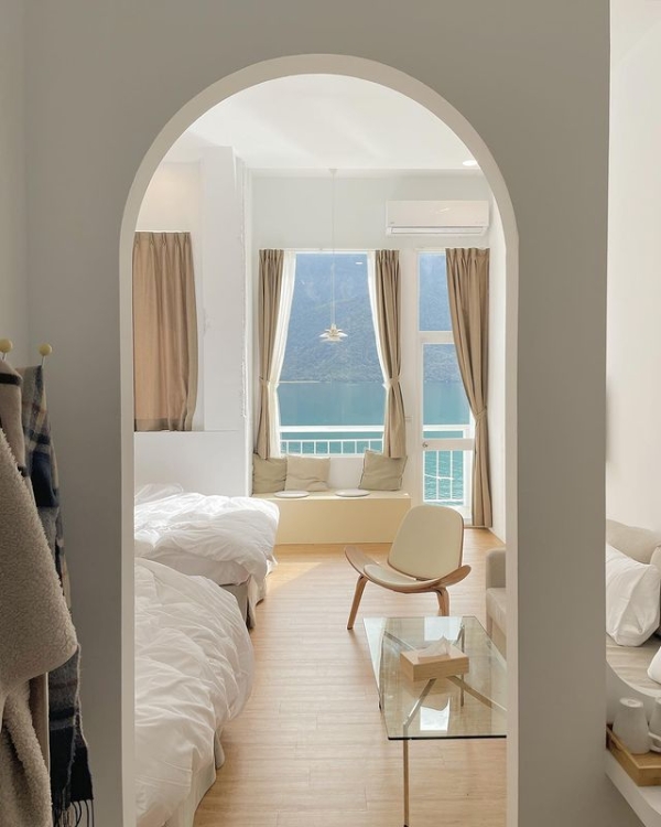 每間房都是景觀房,從一樓公共空間到房間都走極簡的白色系韓風,配上紅磚牆與復刻北歐風家具,吸引超多人來拍照打卡!