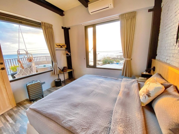 民宿座落在萬里桐小漁村,外觀上是一棟兩層樓的灰色系平房,現代化的簡約設計,面朝大海視野十分遼闊,離海邊只需步行一分鐘~